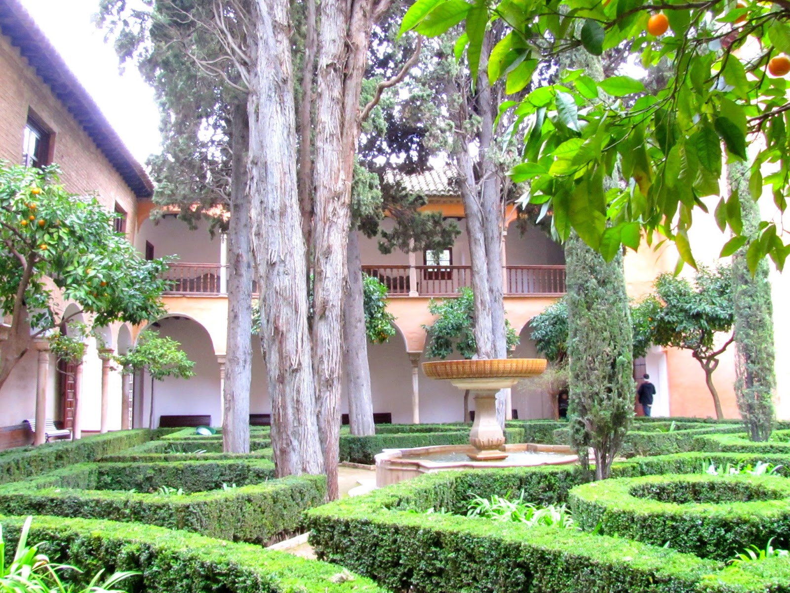 | One of the courtyards with lovely foliage, orchards and fountains |