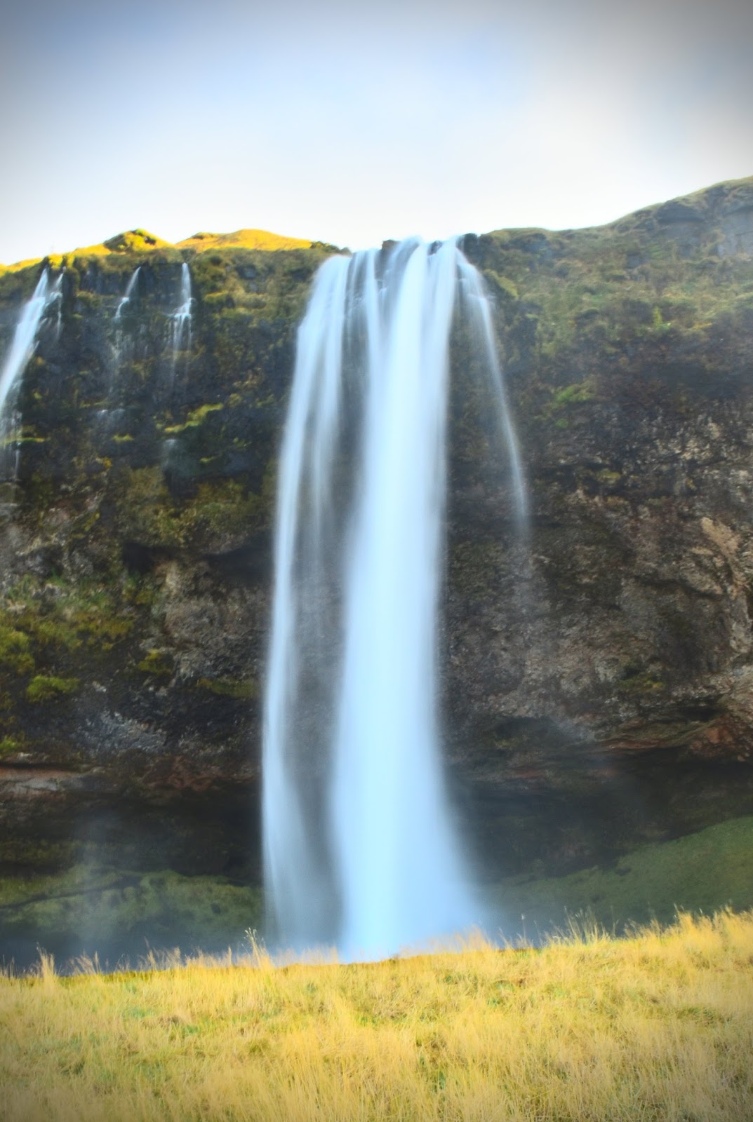 Then we headed down the Ring Road, Iceland’s arterial road that goes around the country, to our first stop – Seljalandsfoss. The waterfalls was visible from a long distance away and we were eager to take the turn off and pull into the parking lot. We quickly had the pizza we had bought and rushed out to get closer to the falls. We were hit by awfully cold winds. The sun was playing hide and seek with the clouds and before we could walk the short distance from our car to the path towards the falls we had seen sun, wind and rain. Sam turned to get back into the car and we cajoled her into walking just a bit more so that we could get some pictures. After some quick pictures the other three returned to the car while I got out my tripod and filters to try out some things I had been practicing for a few months! SC ruled out the idea of walking up the path to the cave behind the falls. I had to adhere as it was very windy indeed and the falls was spraying all over. There was no chance that we would make it back without being soaked and we were just too lazy to change into the waterproof gear we had bought.