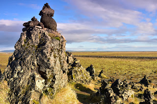 After a couple of quick stops to fill gas and to freeze the vision of the morning sun on a lava field in our camera we were on our way eagerly to see one of the most famous beaches in the world. Before long we had to stop at the cairns field of Laufskálavarða. The entire village of Laufskálar, the first farm in Iceland, was located here and that was wiped out during Mt. Katla’s eruption in 894. Since then it became a custom for every traveler passing through this site to place a pebble/rock on a cairn. There was also a mound that offered views of Mýrdalsjökull and Kötlujökull. After a short stop and each of us placing a pebble on the cairn we were off.