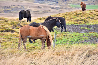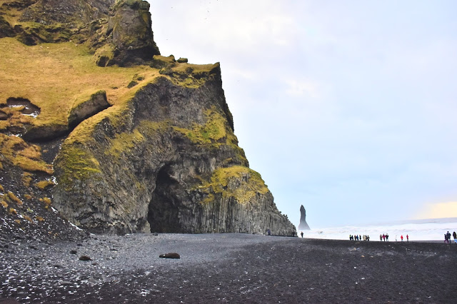 We soon found the turn off to Reynisfjara beach and saw a pretty little village with sheep grazing along the way. Reminding myself to stop on the return we proceeded to parking for the beach and were surprised to find a lot of cars there. It was still windy and cold and not the ideal weather for beach, really!