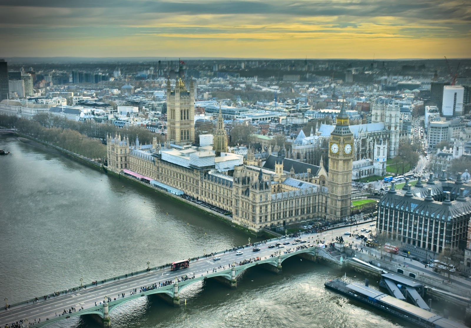 Then follow the Thames to the south, catching sight of the Westminster Bridge, the houses of Parliament, the Westminster Abbey and further…