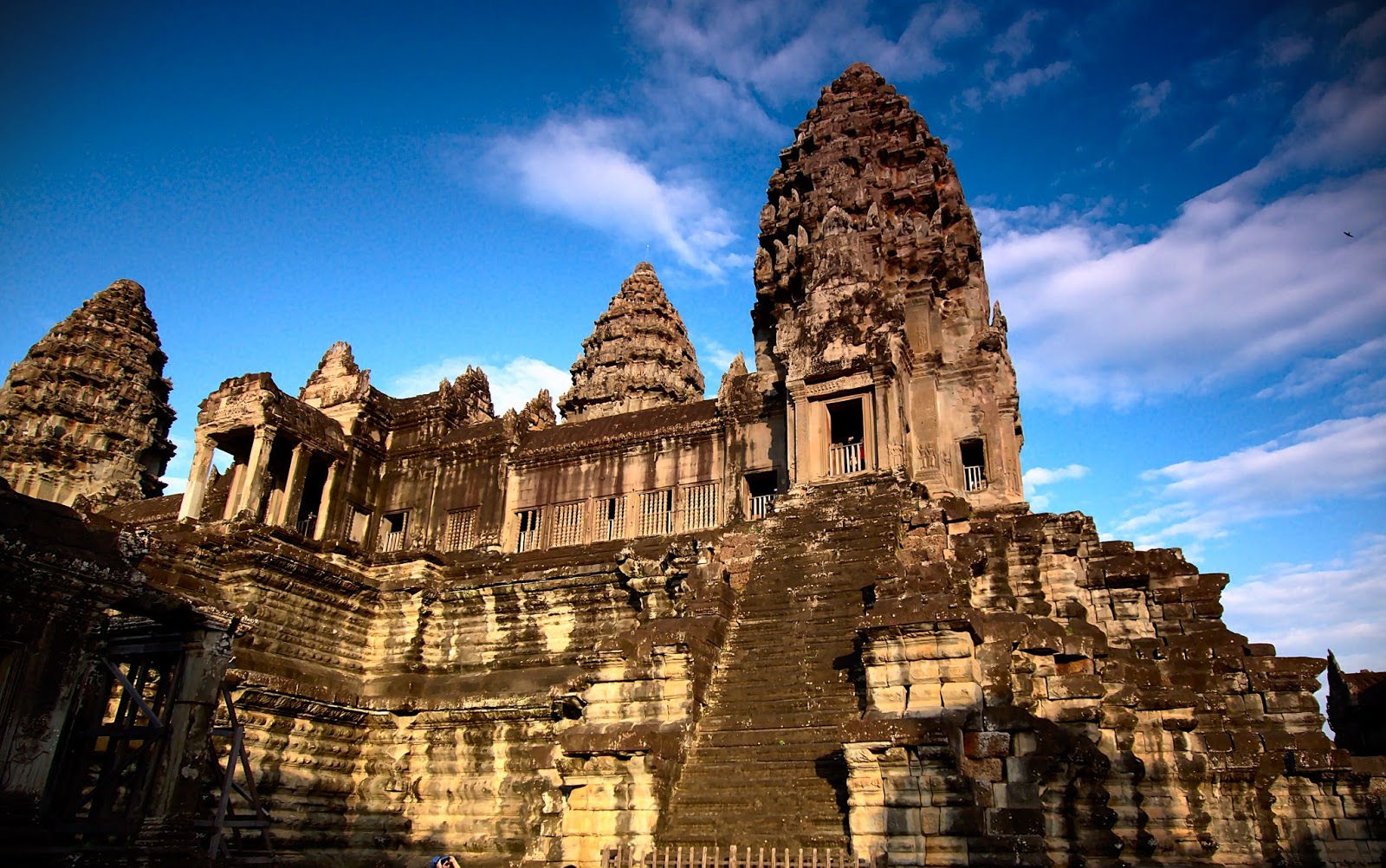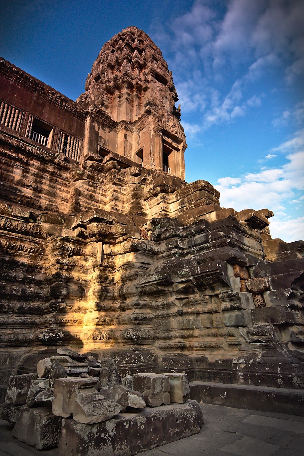 We then took the stairs directly ahead to reach the next level of the temple which opened into a large open courtyard and the view of the central gallery gleaming in the setting sun.