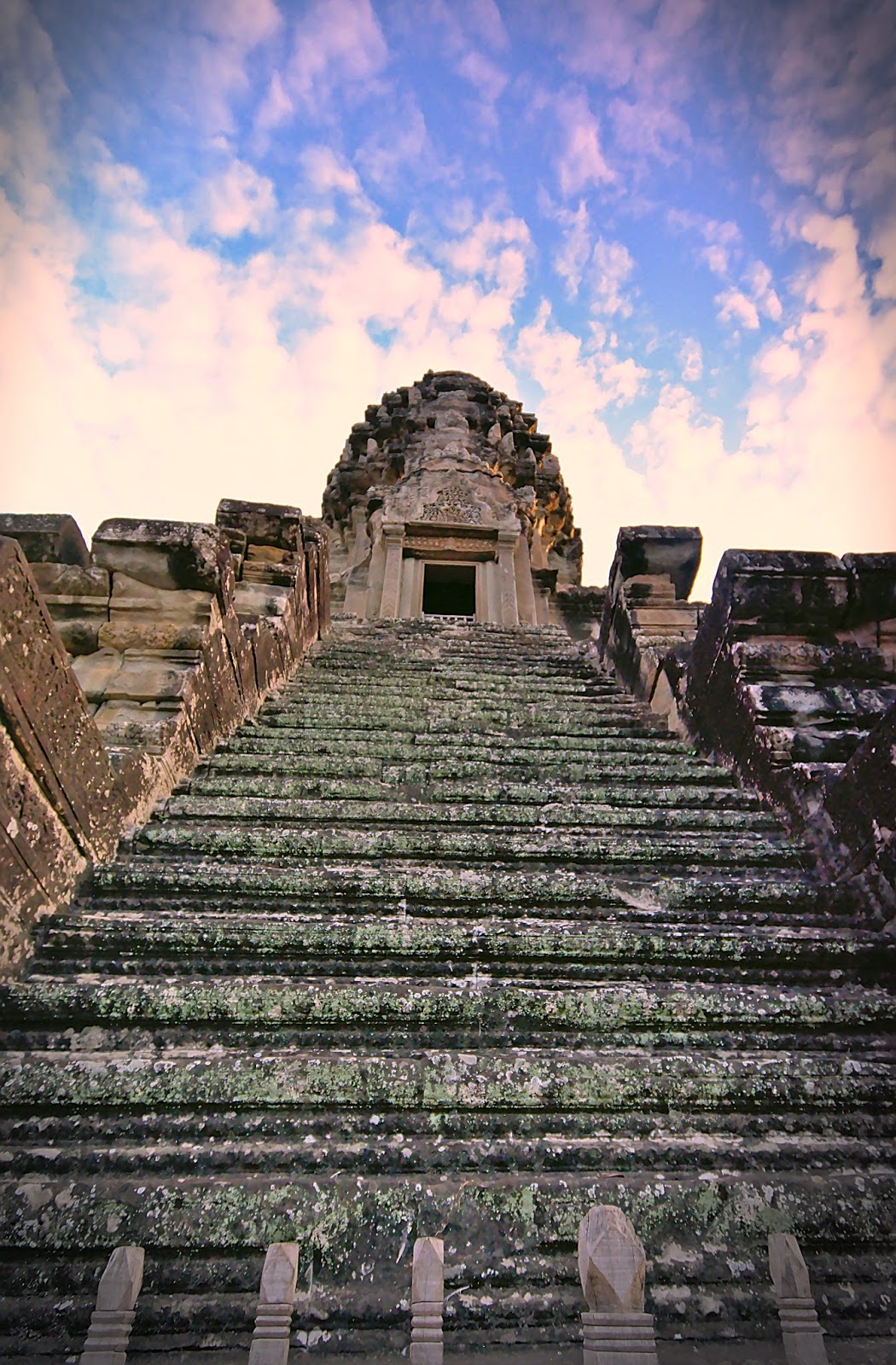 We then took the western stairway down only to be mobbed by an arriving Asian tour group. The stairs had no railing and was quite steep and I was afraid of being knocked over by the eager tourists. I sat down right on the stairs to let them pass before heading back down for a bottle of refreshing cold water in the tuk -tuk.