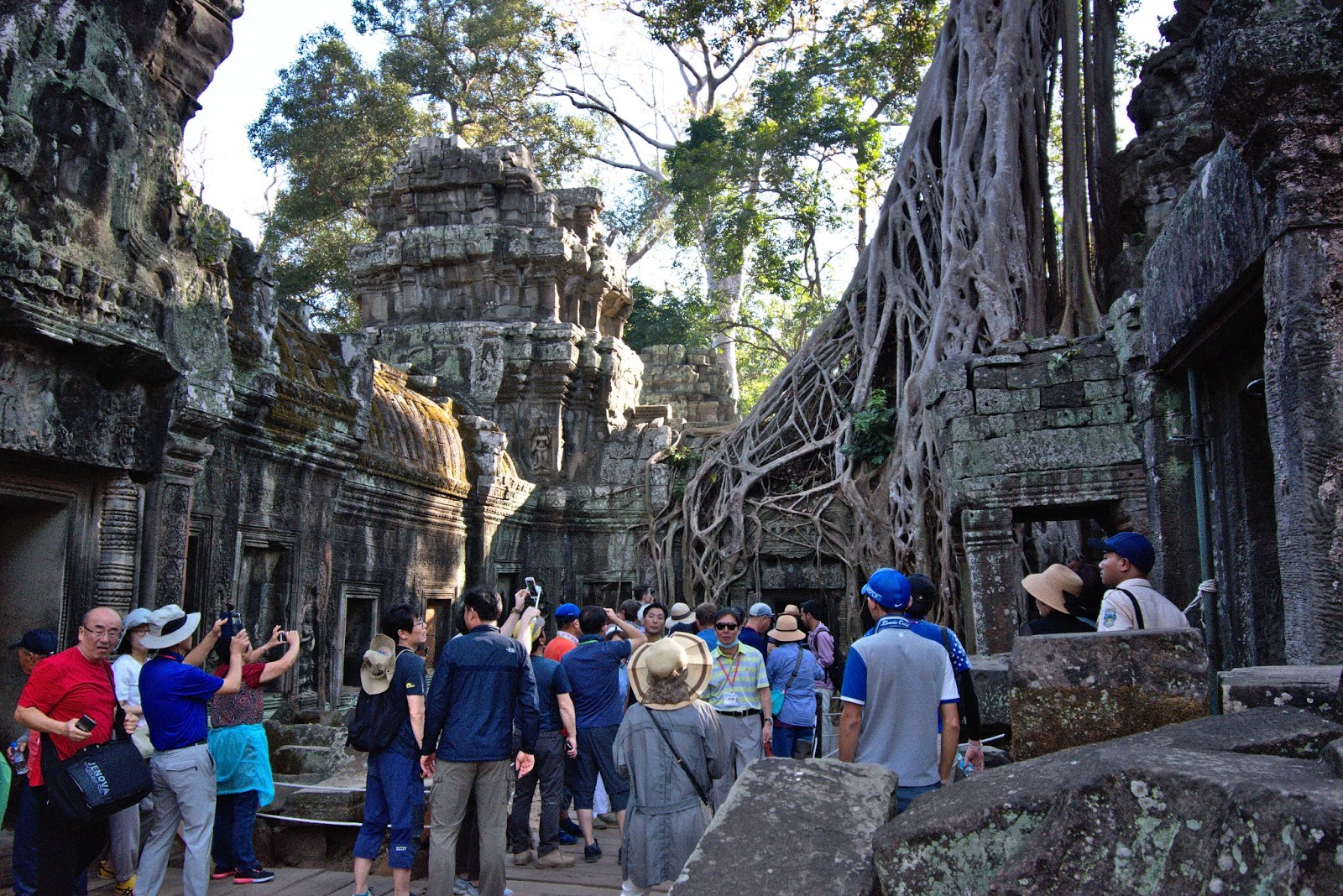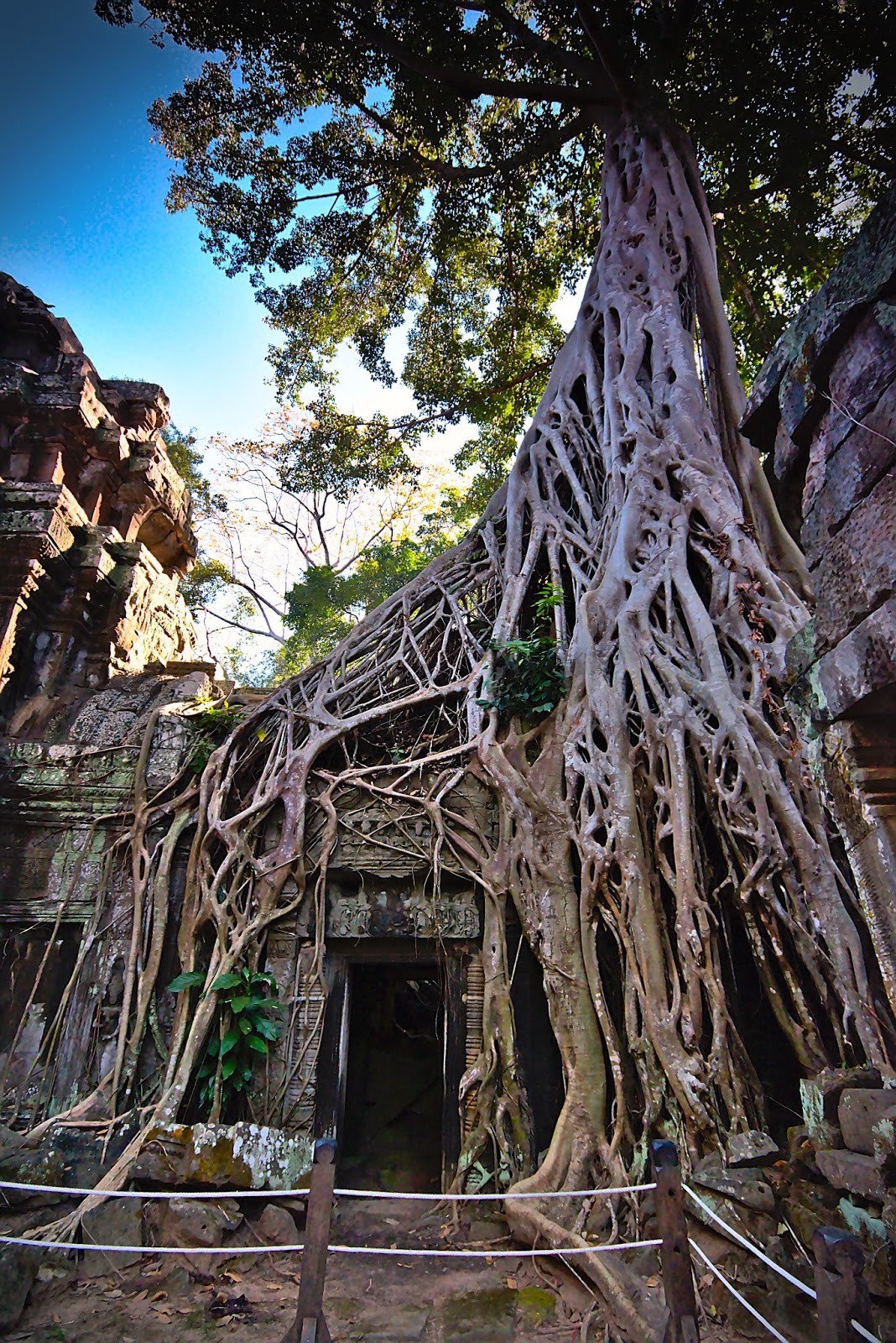 There were more trees claiming ownership over their own parts of the temple. Some with strong thick roots and some with a bunch of thinner roots. It was fascinating to see how nature had a free run in the few centuries that this temple was uninhabited. The restoration is fabulously done.