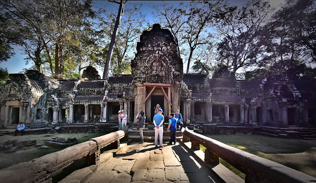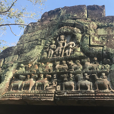 The sight of a silk cotton tree growing from the temple excited us… its thick roots wrapped around the stones as if it were claiming ownership and protecting it from human interference. There were just a few tourists and we snapped away to our heart’s content. Soon we heard a guide arriving with a small group and we hastened to see the other parts of the temple before it grew crowded.