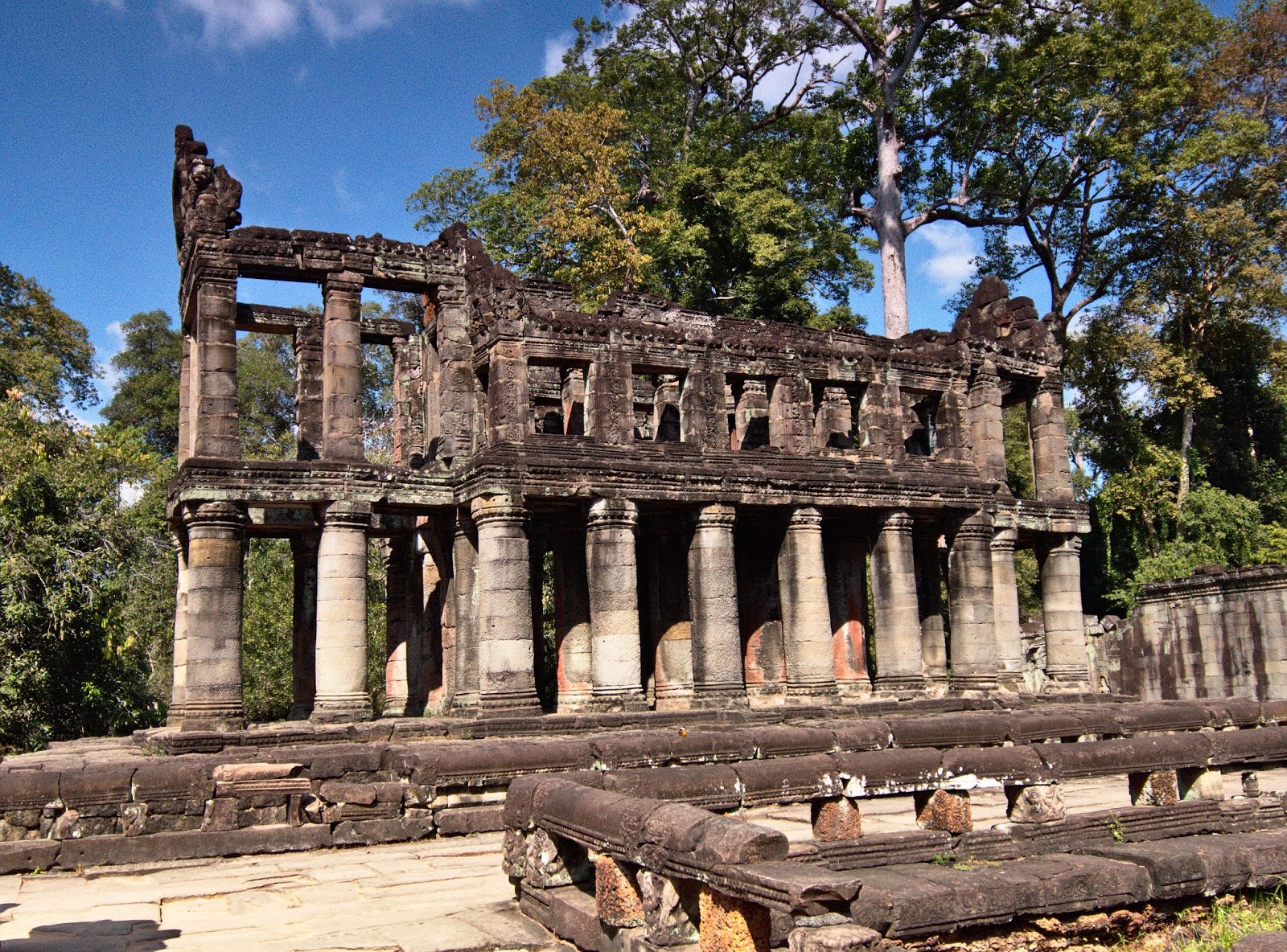 Built around the 12th century it has a moat and a similar Naga-Asura-Deva crossing over it. However it predates Angkor Thom. Our driver said that while Ta Prohm was like a “school”, Preah Khan was like “university”. It seems to be have been a monastery.