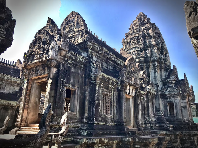 This temple was nearly deserted when we stopped here. We met a couple that we met before at Ta Prohm and Pre Rup. We got around to discussing the sunrise at Angkor Wat. I’m mighty thankful we did! They described their experience about how a big crowd enters Angkor Wat at 5 am and there’s a scramble to get front row seats near the pool. They happened to be in the third row and the husband, being tall was able to capture the picture of the sun rising behind the temple. There were interestingly named cafe representatives who supply coffee to your spot. When I realised that being there at 5 doesn’t guarantee you a front row seat, I decided sunrise wasn’t for me!