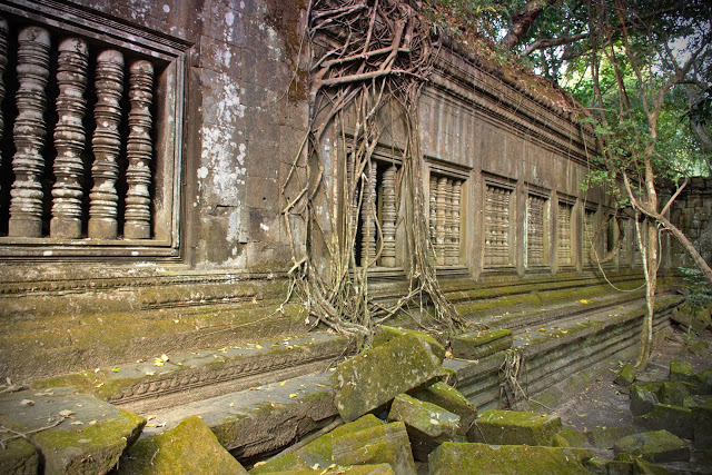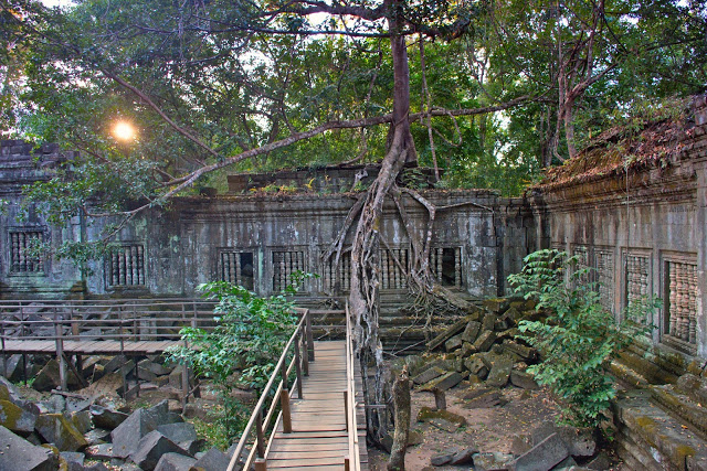 Beng Melea is an unrestored temple with a wooden walkway laid through out except for some parts where clambering over the fallen stones were allowed. It was supposedly built in the 11th century. No one quite know how the temple came to be thus. Some even suspected bombing by American forces during the war. Sam told us that the wooden walkway was laid for shooting of a movie and left in place since.