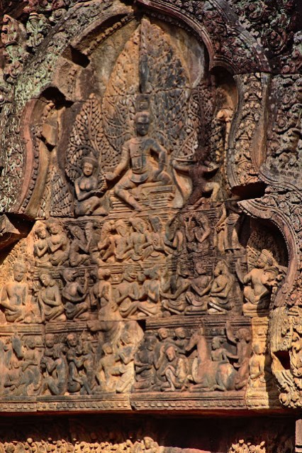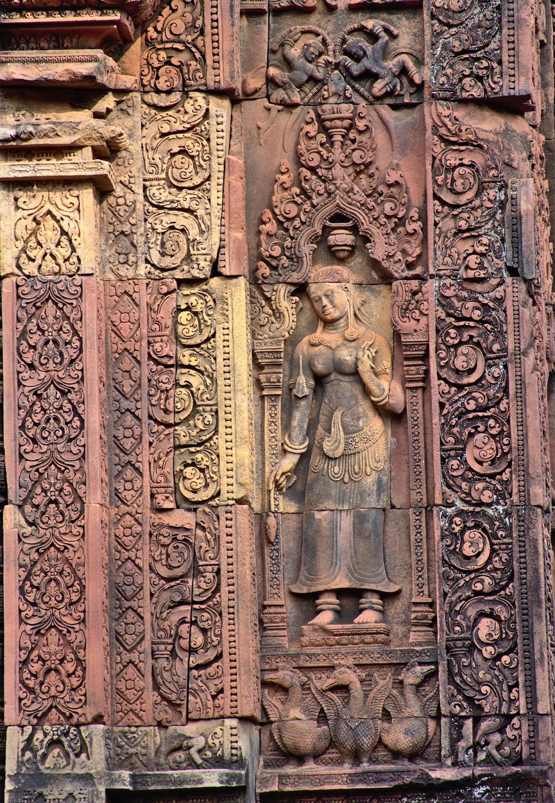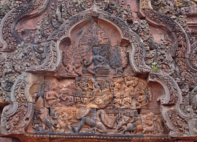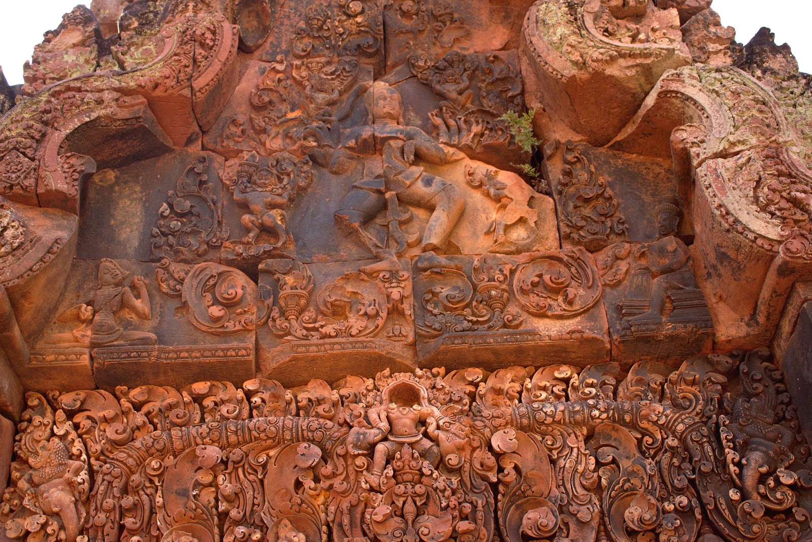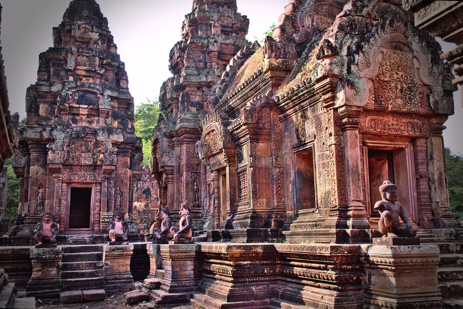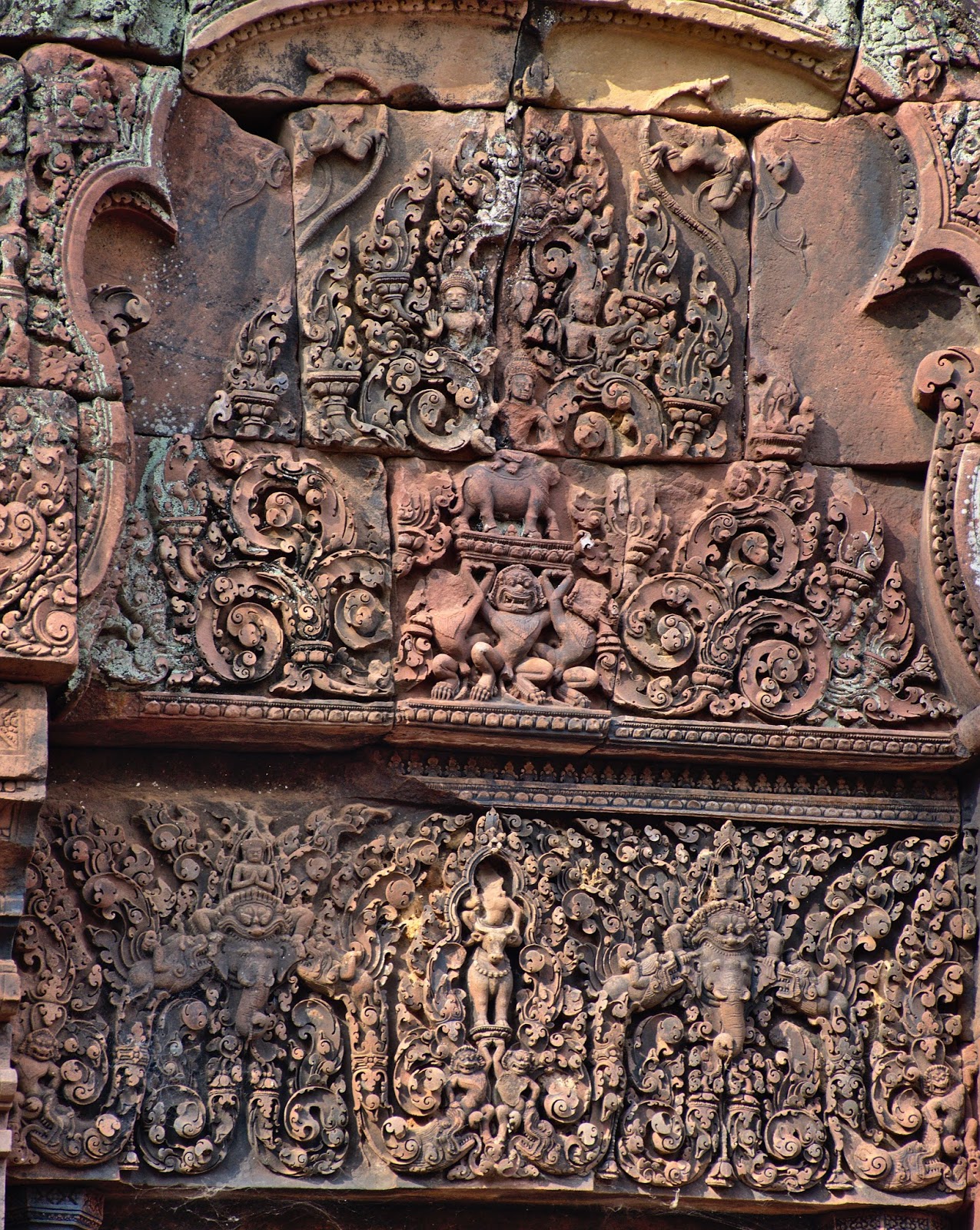 A small temple, quite tiny by Angkorian standards, that was built in the 10th century is the most charming of all temples. It’s made of laterite and pink sandstone. However the treatment of pink sandstone is what makes it different. Lovely carvings, so neatly etched as if it were wood, makes this temple a treasure to relish.