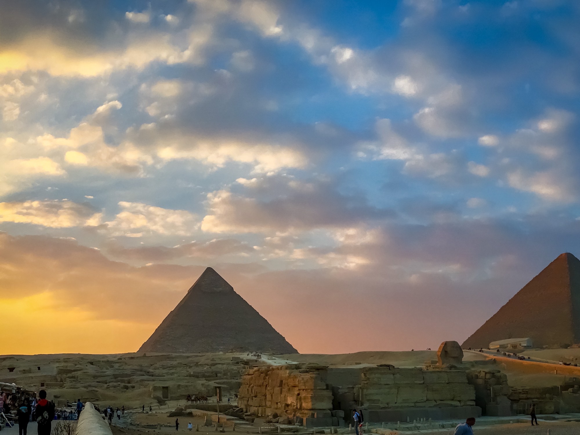 The next evolution in pyramid design was the Bent Pyramid at Dahshur. A step pyramid cased in limestone with smooth sides. But they went horribly wrong with the angle of the pyramid and then course corrected it. The pyramid that evolved next was the great pyramid of Giza.