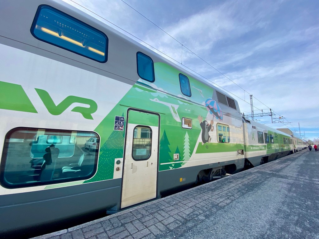 It was a gorgeous day and the despite the snow melting away the atmosphere at Santa Claus’ Village was magical. We called for a taxi and took a ride down to the station located in the centre of Rovaniemi and boarded our VR train headed for Helsinki, with a change at Oulu. VR Trains are very clean and comfortable. The overnight trains between Helsinki and Rovaniemi are called Santa Claus express and are double decker trains with sleepers. As they were quite expensive we decided to do the 9 hour route in the afternoon. The wide, expansive snow scapes, rivers and lakes along with some downloaded content kept us company in this 9 hour journey from Lapland to Helsinki. The cafeteria was well stocked and we had considerable options for a vegetarian meal. We had booked the Extra class considering the long journey and had access to free drinks.