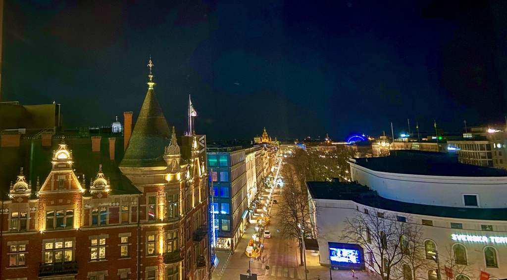 We reached Helsinki a little past 10 and made our way to Scandic Marski which was about 500m from the station. With a stylish room on the 8th floor, we had panoramic windows with the best view possible in Helsinki competing with our tiredness as we retired for the night.