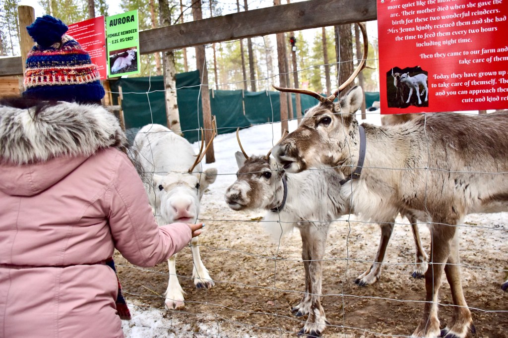 With some time to kill we decided to visit the Elf’s Farm Yard. A small zoo with sheep, alpacas, llamas, bunnies, goats and of course, reindeers! It was quite peaceful here with very few tourists and we spent a considerable time petting the animals and feeding the reindeer. The entry was €15 for adults €10 for under 15s. They also sold some moss for €5 to feed the reindeer which we did. The reindeers were very gentle and while grabbing the moss from our palms. All the animals were lovely, well looked after and offered a good opportunity to see them up close. There was also a mini playground and some sleds available to slide down a small hill. Warming huts and fire pits around for the adults while the children were out enjoying the arctic atmosphere. We spent at least an hour and a half before bidding adieu to this pleasant little farm and made our way down to the husky park.