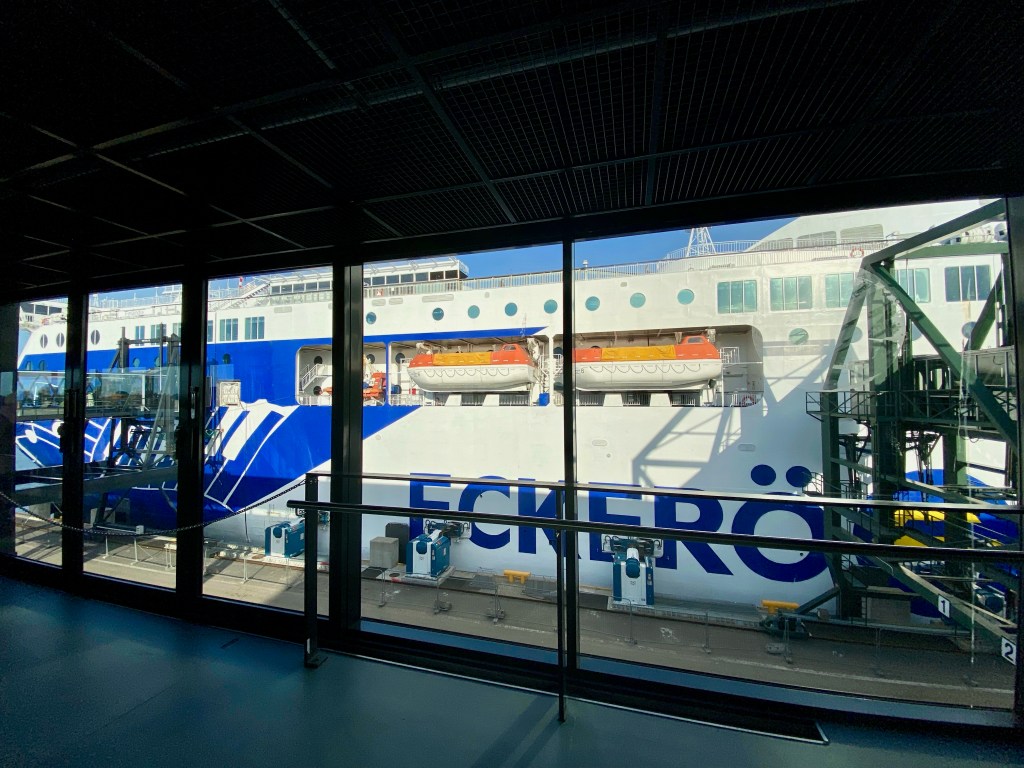 The ship was more crowded with lot of day trippers returning and we really struggled to find seats. People sat themselves in every inch of space that was available, including the floors and the stairs. Not a very convenient way to cross the Baltic. We just about managed to find seats at the back of the gaming machines. The crossing seemed longer due to the crowd and our tiredness!