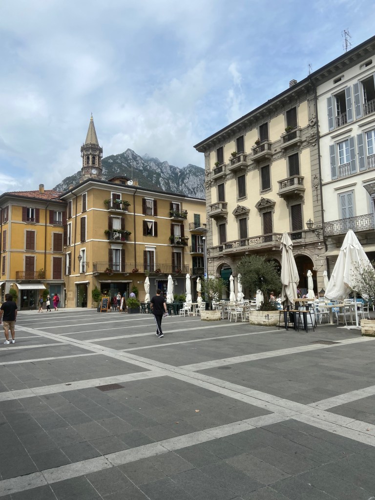 The train made it’s way past pretty towns and gorgeous countryside before we got our first glimpse of Lake Como. Lake Como is shaped like an inverted Y with Lecco at the bottom on it’s right arm. The starting point of the lake ferries in the right arm.