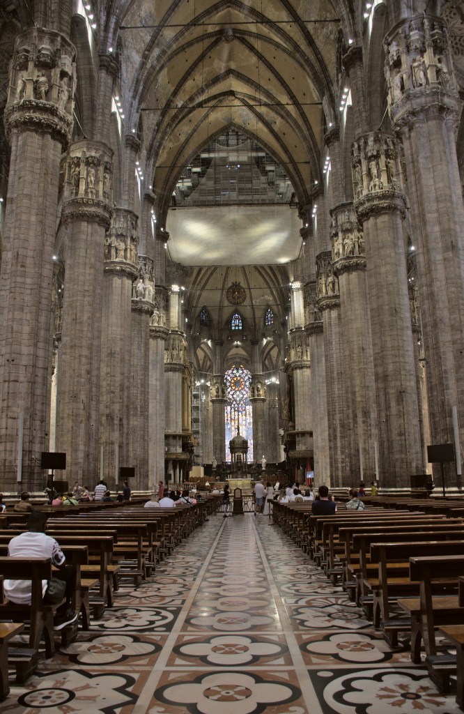 It was unbearably hot and we decided to train it to the Duomo instead of walking. I had booked tickets to see the inside of the cathedral to skip the queues. There was also an option to go to the roof top but due to our limited time in Milan I skipped it. It was unbearably hot outside with the Italian summer sun reflecting off the white marble.