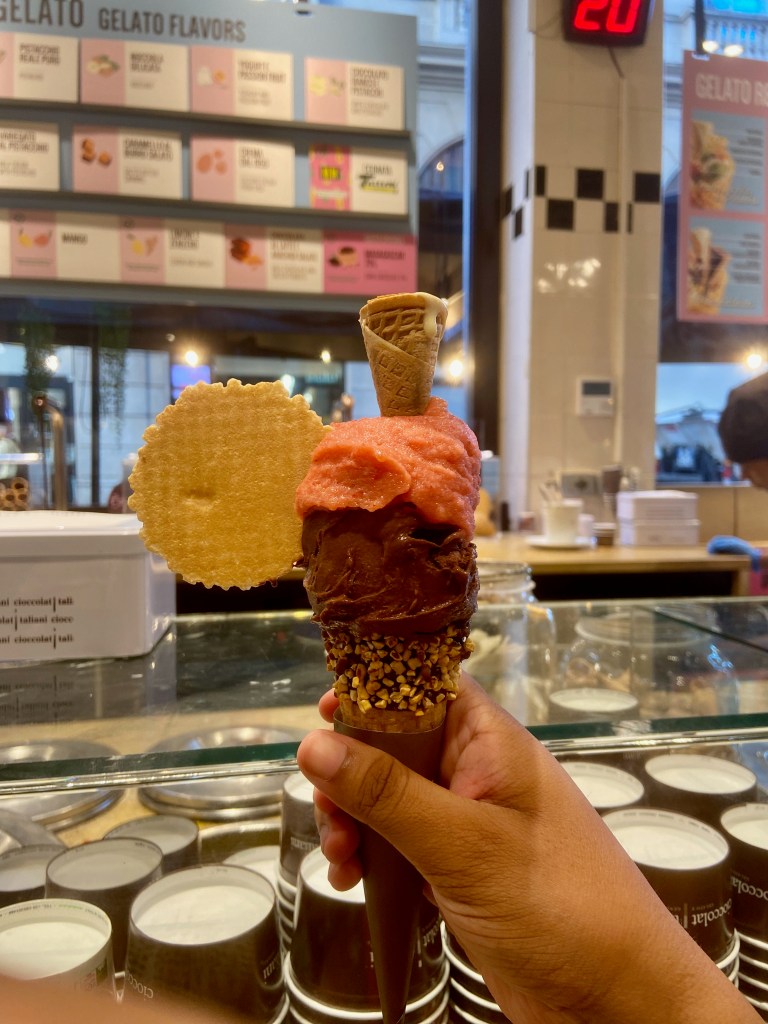 After exploring the cathedral we decided to walk to get some, what else, gelato! This time we decided to visit the famed Cioccolatitalini. Apparently a lot of people had the same idea and it was extremely crowded. We got their artisan ice cream cones and milk shakes that were too good to be true and then walked over to Piazza della Scala.