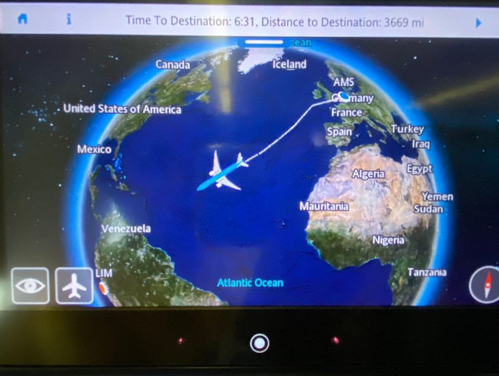 Being a Boeing 777-300ER it was a huge aircraft for our transatlantic flight and boarding commenced early. Perhaps due to the protests and unrest in Peru the flight was not full. We soon found our seats and settled down for our 12.5 hour flight.
