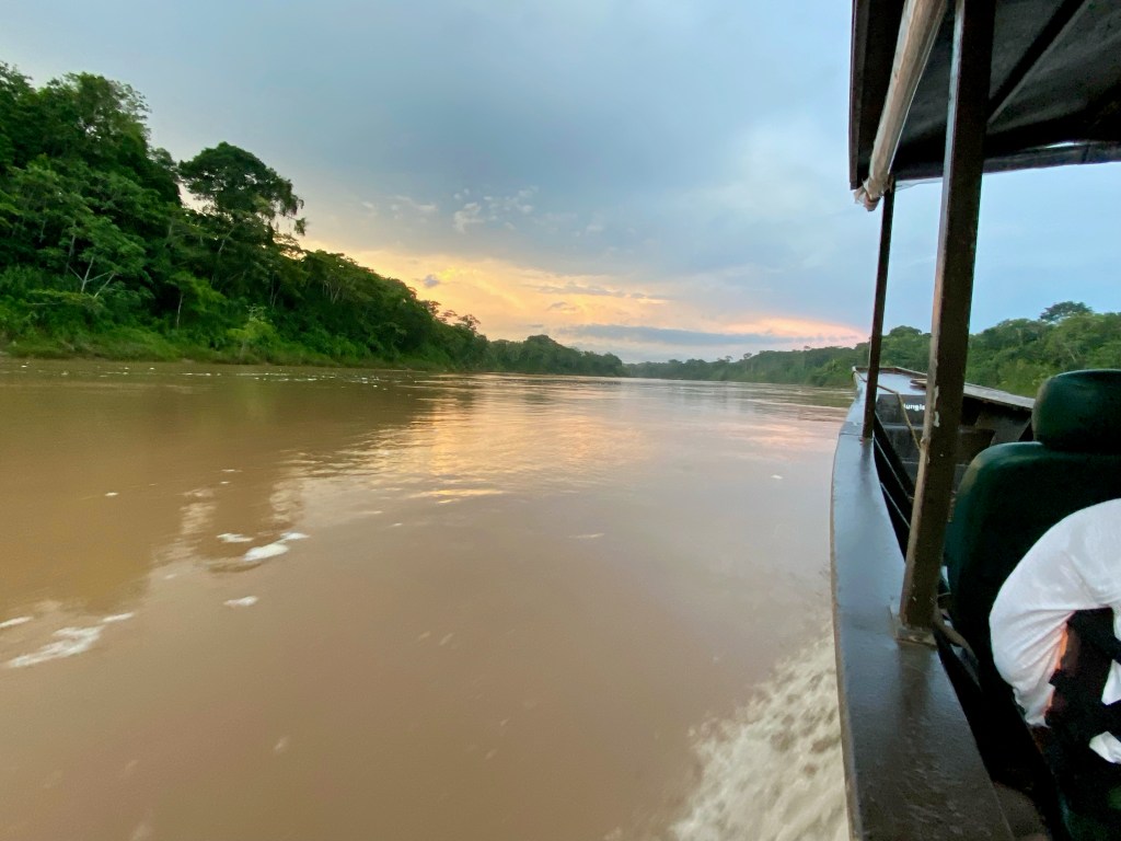 We had to start at 4 am and we were up at a little past 3 and got ready for our most anticipated sight of the trip – watching the macaws at the clay lick. We made our way out of the lodge and into the boat in complete darkness and started our ride further upstream. Soon day broke and we could see the river and rainforests around us.