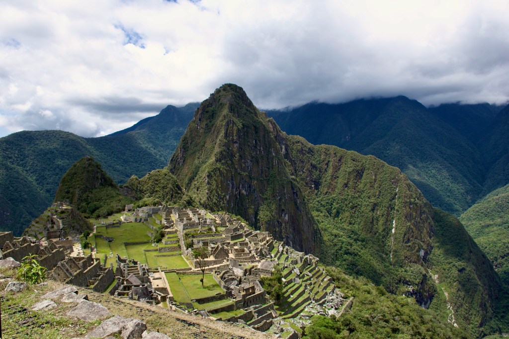 We walked through woods while the guide spoke about the history behind MaPi and started climbing the stairs to the Guard House. Ever since Covid the entrance to the MaPi site and the routes to walk through the site were heavily regulated. Their official website had tickets to enter just the citadel along with entry to the citadel and to the mountains around the site – Machu Picchu and Huyana Picchu. There were 4 routes around the site of which two took us to the top for the most popular view of the citadel. We were quite breathless as we climbed the steps and paused to rest in the shade when the guide would tell us more about the site. Though rain was forecast for the afternoon the sun was out with some clouds in the horizon and it was pretty warm.