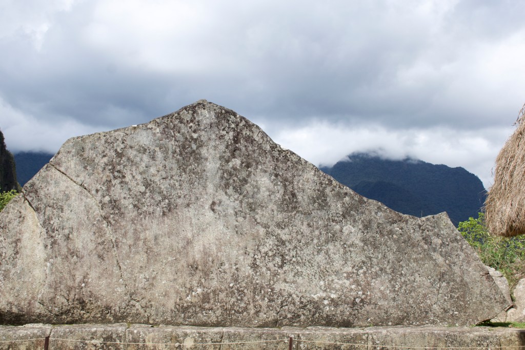 Our guide pointed out the chinchillas resting on the cracks in the quarry and taking a siesta and some coca trees. Apparently many of the trees around the site continues to exist from ancient times. We made our way down to see the llamas and alpacas grazing the courtyard, the rooms and open spaces that were used for ayahuasca ceremonies in ancient times before arriving at the sacred rock. The guide’s theory was that the rock was cut to represent the shape of the mountain behind it. Other theories say that was a sacrificial altar before/after people made trips to Huyana Picchu mountain. This rock was just near the entrance to the HuPi mountain where there were more temples dedicated the celestial objects. The guide had to leave us at this point and we took a break just behind the sacred rock for a while to nibble on some snacks. I also had another course of Panadol. I was also happy to see my SpO2 at a 100%!