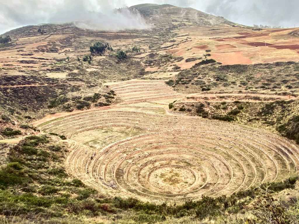 The Moray crop circles were developed as an agricultural lab to test the ideal crops to be grown. Each of the terrace had a microclimate and ancient Incas tried out the crops that were suitable to be grown at each level.