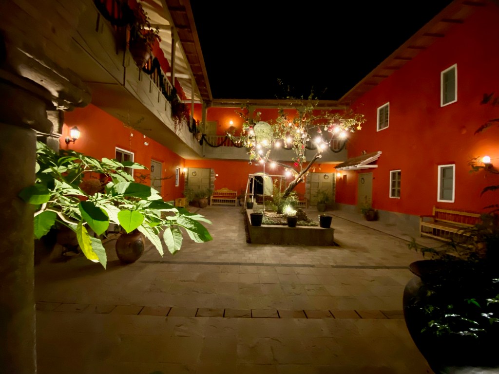 With so many options this was one city that I couldn’t narrow down my choices. Most of the trip reports recommended the Wyndham or the Hilton but they were way beyond our budget. One of Shash’s requirement was that it should have a courtyard and colourful walls just like the house in Disney’s Encanto had. This made it a little easier for me to narrow down hotels that met this criteria and I finally decided on Tambo del Arriero based on reviews and recommendations in guide books. I wasn’t disappointed at all!