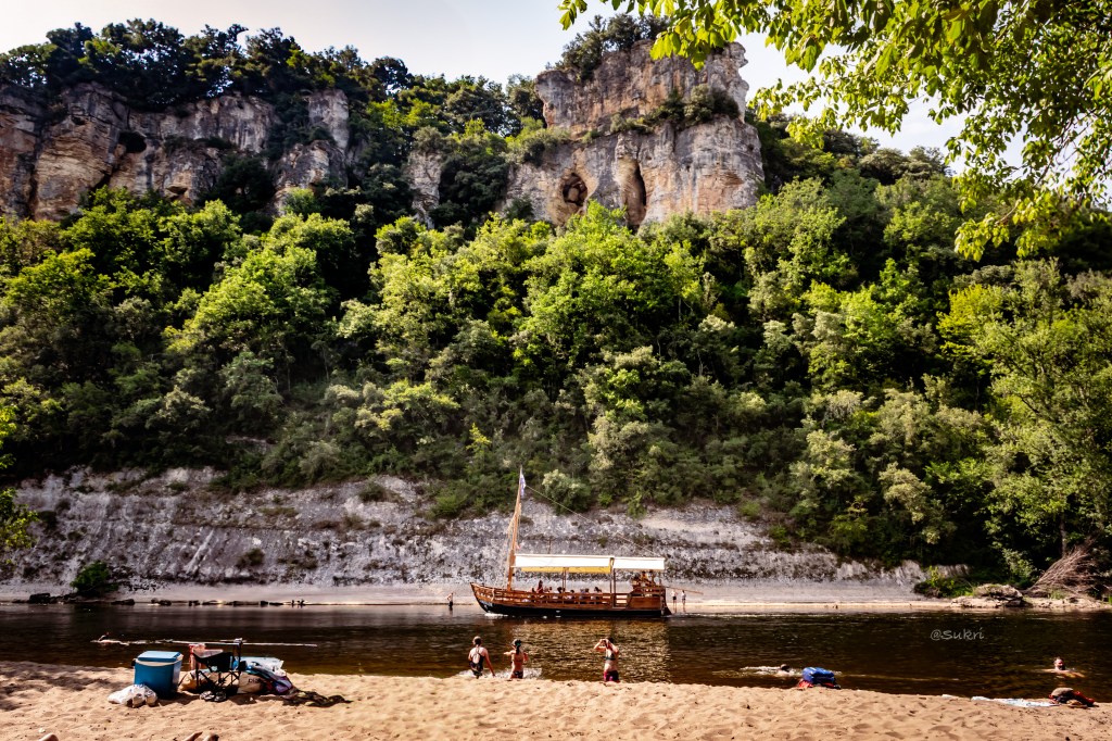 The secret beach! When I searched for beaches along the Dordogne river no search returned this beach. I spotted this lovely beach with a huge car park only when I went on the street view on Google maps. Located just after La Roque, the beach is actually hidden from view even after approaching the carpark. There is a short walk through weds before it opens to a lovely sand beach. We brought our picnic, found a nice shady spot and had a quick lunch while a lot of people were cooling off in the Dordogne river. We unfortunately did not carry any swim wear and went down into the water only until knee level. This part of the river was very shallow and we saw people walking across to the other bank of the river. The river waters were refreshingly cool and we spent considerable time to cool off in the afternoon heat. Wish we had brought swim wear as the sun the would have dried us off in a few minutes!